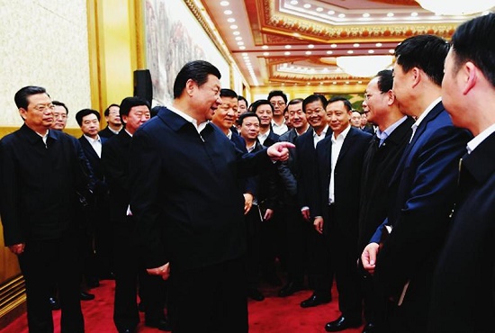 1月12日,中共中央總書記、國家主席、中央軍委主席習(xí)近平在北京主持召開座談會,同中央黨校第一期縣委書記研修班學(xué)員進(jìn)行座談并發(fā)表重要講話。這是座談會后,習(xí)近平與研修班學(xué)員親切交流。 新華社