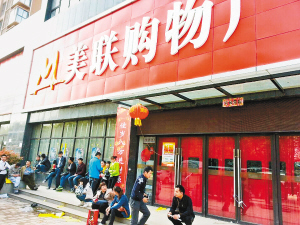 李阿姨家住八府莊小區(qū),位于含元路中段路北的這家美聯(lián)購物廣場是她經(jīng)常光顧的地方?!扒迕餍¢L假期間還正常營業(yè)呢,今天早上過來卻發(fā)現(xiàn)不開門了,而且門口還站了一群人?!崩畎⒁桃淮蚵牪胖?,這些人都是超市的供貨商,因為拿不到貨款,他們便堵在超市門口等待超市負責(zé)人出面解決問題。