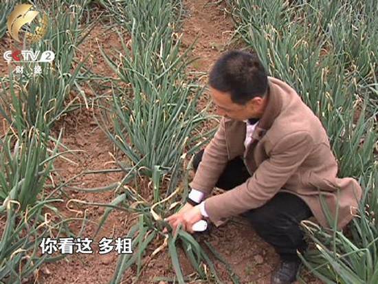 為了找到水利條件較好,能夠種植洋蔥的土地,寧賈偉也來到了解刀村附近的樓底村7組,在這里,他看到平展展的農(nóng)田旁都鋪設(shè)了渠道,這讓他很高興。在這里央視財(cái)經(jīng)《經(jīng)濟(jì)半小時(shí)》記者也遇到了當(dāng)?shù)氐霓r(nóng)業(yè)勞模苗官科。