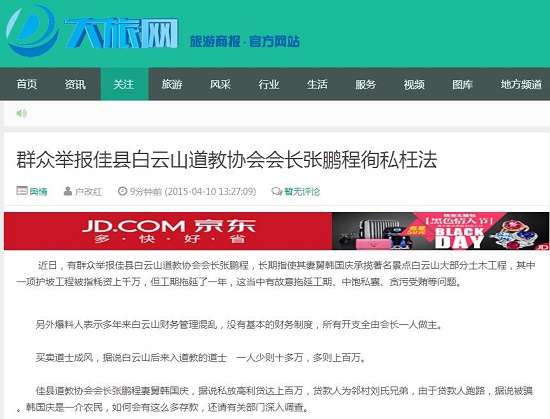 近日,有群眾舉報佳縣白云山道教協(xié)會會長張鵬程,長期指使其妻舅韓國慶承攬著名景點(diǎn)白云山大部分土木工程,其中一項(xiàng)護(hù)坡工程被指耗資上千萬,但工期拖延了一年,這當(dāng)中有故意拖延工期、中飽私囊、貪污受賄等問題。