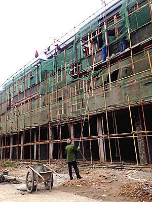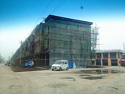3月26日,本網(wǎng)工作人員驅(qū)車趕往位于三原縣城區(qū)外東南方位的“富聚車城”項目所在地,一下車,映入我們眼簾的是路兩邊整齊劃一的兩排多層建筑,現(xiàn)場目測大部分工程主體已完工,但現(xiàn)場仍有許多工人在不同的崗位工作,一派繁忙的景象,如此大規(guī)模的施工現(xiàn)場和緊張有序的施工環(huán)境,讓我們無論如何也看不出這是一個涉嫌違規(guī)占地的項目。一位現(xiàn)場的工人告訴記者“你看前面那棟高的還沒蓋完呢,這邊這些現(xiàn)在都在做水電呢”。
