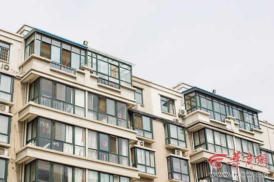 30日,記者來到位于西安南郊的圣合家園小區(qū)發(fā)現(xiàn),大多數(shù)頂樓的業(yè)主都將露臺上搭建了彩鋼板,彩鋼板和地面之間用落地玻璃連接,多家業(yè)主將改造后的露臺當作陽臺使用。記者來到17棟4單元701的業(yè)主張阿姨家發(fā)現(xiàn),兩位泥工正在給墻面抹水泥,張阿姨說,前兩天下雨,污水堆積在露臺,很難清理,后來住在樓下的鄰居提意見,說污水漏到家里天花板上,墻面都開裂了。實在是沒辦法,跟小區(qū)物業(yè)講了一下,花了近3萬元把露臺包起來,但物業(yè)并沒有提出要交什么費用。