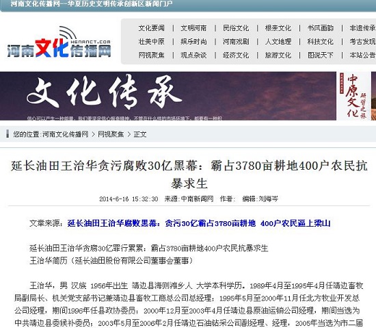 延長油田王治華貪腐30億罪行累累:霸占3780畝耕地400戶農(nóng)民抗暴求生