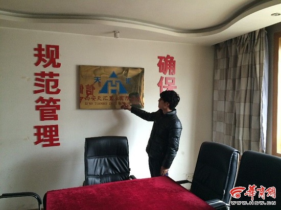 23日,華商報(bào)記者與蘇先生三人一起來到了西安天匯置業(yè)有限公司項(xiàng)目部,與蘇先生所說的一致,該項(xiàng)目辦公地點(diǎn)位于渭城公安分局第三家屬院一戶民房里,家屬院內(nèi)外、單元樓前后都沒有任何標(biāo)示,頭次前往的人很難找到。該項(xiàng)目部所在的民房?jī)?nèi)設(shè)有辦公室和會(huì)議室,會(huì)議室墻上貼有西安天匯置業(yè)有限公司的名稱,以及一些宣傳標(biāo)語,當(dāng)天其內(nèi)僅有3名工作人員,而收取蘇先生三人共45萬元房款的景姓工作人員就在其中。