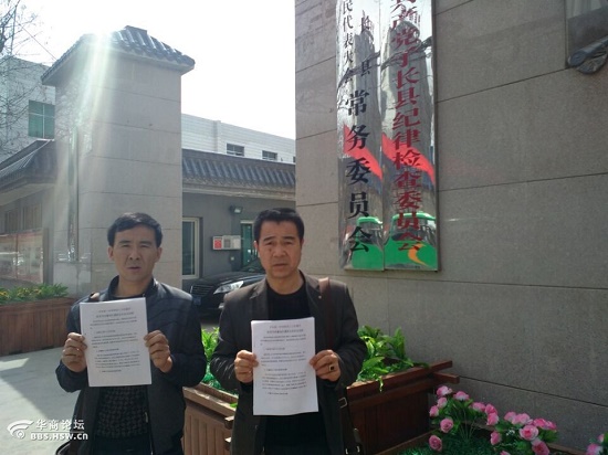 村民周紅旗與李文清的兒子手持舉報信