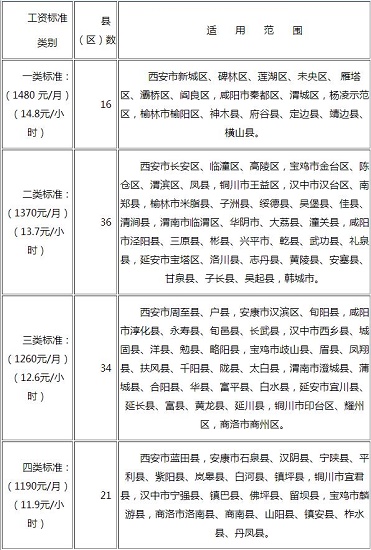 陜西省最低工資標準及適用范圍