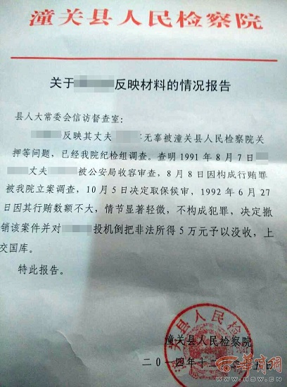 1992年6月27日,潼關(guān)縣檢察院做出決定,撤銷王先生行賄一案。