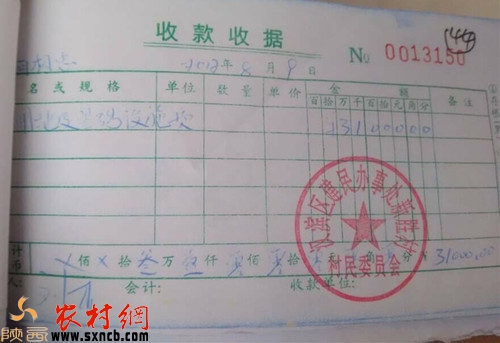 新勝村村委會(huì)提供的賣莊基地的收款憑證