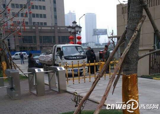 3月18日中午兩點(diǎn)左右,民生熱線記者來到西安萬象春天小區(qū)南門。剛好看到了業(yè)主運(yùn)沙車被阻撓的一幕。