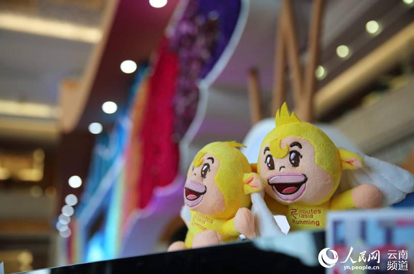 大會吉祥物以云南獨有滇金絲猴作為原型,取名“融融”寓意為融會貫通、融和發(fā)展、其樂融融 攝影 薛丹