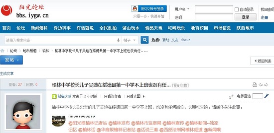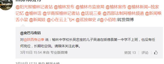 網(wǎng)曝榆林中學(xué)校長(zhǎng)兒子吳迪在綏德縣第一中學(xué)長(zhǎng)期吃空餉