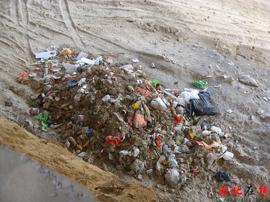 3月10日,在知情人的指引下,記者在延川縣城南的馬家河村高速公路高架橋下秀延河岸邊看見散倒著七八堆生活垃圾,據(jù)觀察這些垃圾是近日才倒的,有三輪或農(nóng)運(yùn)車輪的痕跡。雖然天氣還冷,但刺鼻的氣味還是可以聞到。隨后在神圪垯山下公路兩側(cè)發(fā)現(xiàn)也堆放了不少生活垃圾,顯然時間較長。