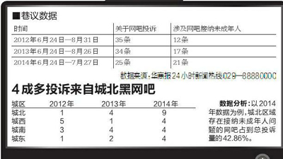 暑假最讓家長頭疼的,莫過于“黑網(wǎng)吧”又要開始“網(wǎng)住”學生。僅今年6月24日至7月27日,華商報已接到讀者關于網(wǎng)吧接納未成年人的投訴21條,占此類問題總投訴量的84%。