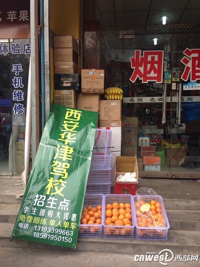 華津駕?!罢猩c(diǎn)”設(shè)在長安南路上的一家煙酒水果店內(nèi),店老板說,想報(bào)名直接打電話,他們只是借了個(gè)地方,不管后續(xù)情況。