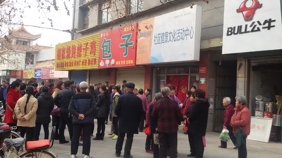 在位于東風(fēng)大街商場東側(cè)記者看到,門前已經(jīng)擁擠了好多人,門牌顯示為“奧琳德”的標(biāo)志,并寫有全國服務(wù)電話400-6833-222,另一側(cè)上面顯示全國連鎖MOWN001,下面印著“社區(qū)健康文化中心”。