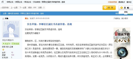 實(shí)名舉報:李塬社區(qū)副支書弄虛作假、違規(guī)