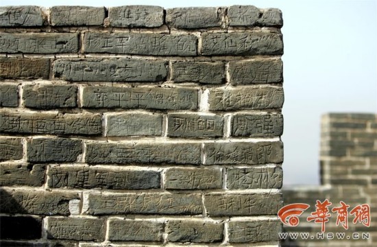 但是,細心的他發(fā)現(xiàn),凡是人的目光所及,都能看到青磚上被人刻上的字,絕大多數(shù)是人名,或是某某在此一游之類。被刻字的磚很多,尤其是最上面一層,除了腳下的磚塊,幾乎無一幸免,感覺像一個人的臉被抹了涂料,很不舒服?!翱吹竭@些磚,一下子沒了繼續(xù)游玩的心情,這對景區(qū)的形像很不好?!?