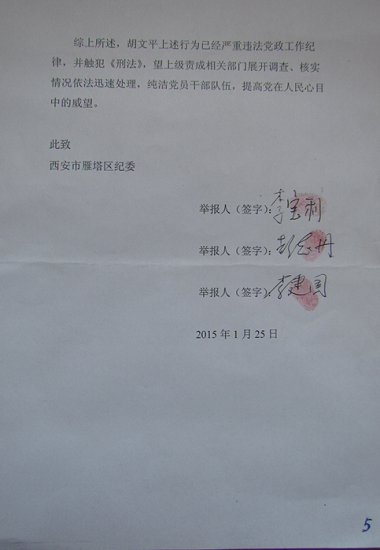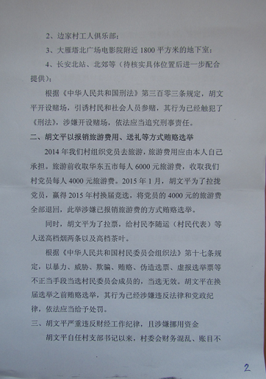 綜上所述,胡文平上述行為已經(jīng)嚴重違法黨政工作紀律,并觸犯《刑法》,不再具備成為村級黨組織領導班子和村委會領導班子候選人資格。根據(jù)小寨街辦要求,羅家寨村黨支部將在2月26日進行換屆選舉,屆時胡文平將作為候選人繼續(xù)參加選舉。望上級責成相關部門展開調查、核實情況依法迅速處理,純潔黨員干部隊伍,提高黨在人民心目中的威望。