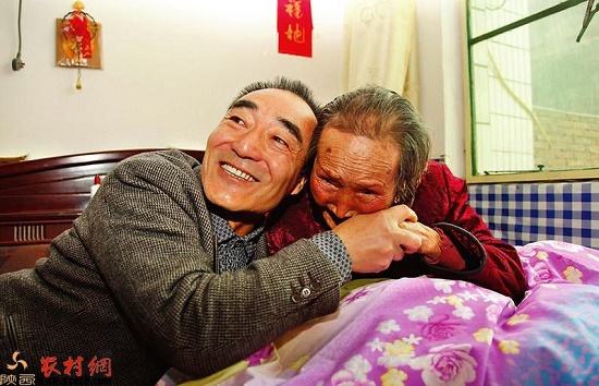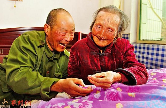 姚富國(guó)為母親喂飯。