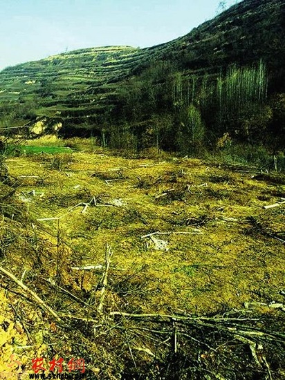 “一面坡,估計(jì)有七八畝地吧,被村組招商的企業(yè)砍伐得不成樣子,給鎮(zhèn)上、林業(yè)局報(bào)告,也沒人管”。這件事就發(fā)生在寶雞市渭濱區(qū)石鼓鎮(zhèn)高家河村一組。