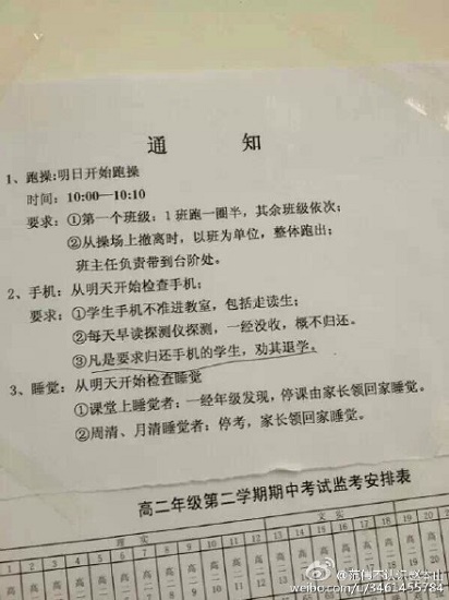 據(jù)新浪微博爆料:延安四中這樣的教育方式可不可?。刻貏e好奇的是現(xiàn)在四中的孩子是被整的有多慘,連上課睡覺都往死欺負(fù)呢,晚上睡覺時間要是夠誰上課睡呢,況且桌子上睡一早上起來半個身體都是麻的[笑cry][笑cry][笑cry]也是醉了。