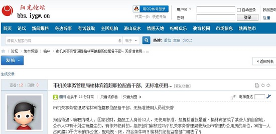 為給待遇、騙取納稅人、國家錢財,超配工人身份12人。無使用標準、想提拔誰就是誰丶榆林賓館成了某些人的自留地,公示人中有計劃生育超生的,有作奸犯科的。組織部門審核過嗎?機關事務管理局做為全市管理辦公用房的單位,賓館一人占間超20平方米的辦公室,配電視丶床,符合條件嗎?榆林的紀檢監(jiān)察部門哪去了?