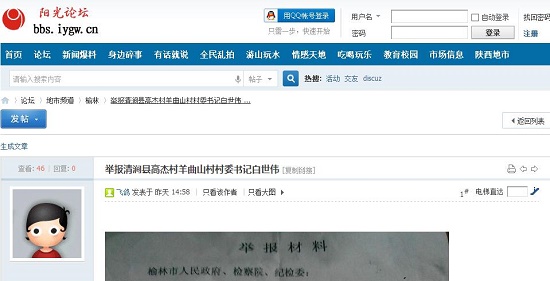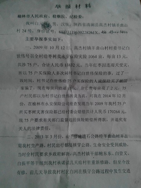 網(wǎng)友舉報清澗縣羊曲山村村委書記白世偉