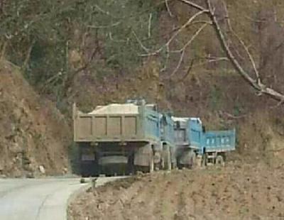 運礦車啟程,路邊就是隨意堆放污染環(huán)境的礦渣