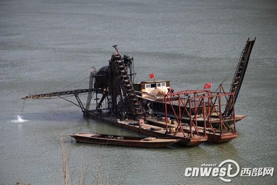 1月20日西部網(wǎng)記者來到旬陽縣,漢江從旬陽呂河漢江大橋開始至旬陽縣城的河段內(nèi),有9艘采砂船,其中7艘正在作業(yè),采砂船作業(yè)聲音在幾十米外的316國道上都能聽見。