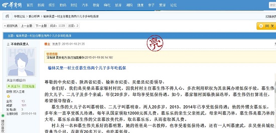 為此事,我們向當?shù)剜l(xiāng)鎮(zhèn)府,吳堡縣委書記王華、縣長高苗多次反映,但一直無人調查,希望上級領導徹查,還全體村民一個明白,讓慕生偉這樣的村主任受到司法部門的懲處。慕家塬村馬上進行換屆選舉工作,希望村上能選出一位真正能為村民服務的村主任。