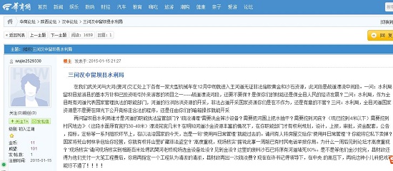 再問留壩縣水利局誰才是河道的職能執(zhí)法監(jiān)管部門?"疏浚清理"需要洗金篩沙設(shè)備?需要把河圍上把水抽干?需要挖到河底?(現(xiàn)已挖到4米以下)需要挖到村民地邊》(這段水面原有寬約30-40米)漂流筏寬幾米?在明知河道沙金資源豐富的情況下,在你職能部門才有權(quán)利規(guī)劃,設(shè)計,上報,審批,資金配套,公告,招標,定標等一系列組織環(huán)節(jié)上,在以法治國家的今天,豈是一句“使用并日常管理”就能過去的。請問有人將房屋交給你“使用并日常管理”?你能將它私下賣掉?國家將荒山樹林承包給你經(jīng)營,你就有權(quán)將山里礦藏非法盜空?“高度重視,現(xiàn)場核實”據(jù)說此事一周前已有村民電話舉報你局。為什么一周后見到論壇才高度重視?“現(xiàn)場核實"請問現(xiàn)場核實到相距百米處得武関河老橋現(xiàn)場選金設(shè)備處沒?見到金沒?這里的廢料沙石已將原有河道堵死80%。是不是等他們金沙挖完,縣財政還得為他們支付一大筆工程費后,你局再指定一個工程隊為清淤的清淤,縣財政再出一次疏浚費?現(xiàn)在在許書記得領(lǐng)導(dǎo)下,在中央.的高壓下,再玩這種小兒科把戲可能行不通了!