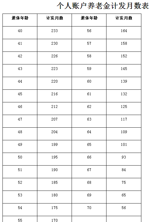 附件:個(gè)人賬戶養(yǎng)老金計(jì)發(fā)月數(shù)表