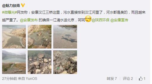 據(jù)新浪微博爆料:#微曝光#網(wǎng)友稱:安康漢江三橋這里,污水直接排到漢江河里了,河水都是臭的,而且越來越嚴(yán)重了。@安康發(fā)布 的確保一江清水送北京,呵呵@陜西環(huán)保 @安康宣傳