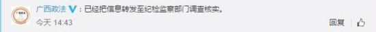 1月9日,廣西壯族自治區(qū)黨委政法委官方微博@廣西政法回應(yīng)澎湃新聞(www.thepaper.cn)稱,廣西貧困縣法院領(lǐng)導(dǎo)住宅超550平米一事已轉(zhuǎn)至紀(jì)檢監(jiān)察部門調(diào)查核實(shí)。