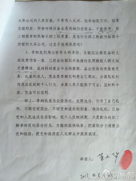 據(jù)新浪微博爆料:【曾經(jīng)的民警實(shí)名舉報(bào)西安公安現(xiàn)任地鐵分局局長(zhǎng)】原西安藍(lán)田縣公安局民警董文華因自身一起打架斗毆事件被單位處理,離開警隊(duì)后開始實(shí)名舉報(bào)原藍(lán)田公安局長(zhǎng){李相民}現(xiàn)任西安地鐵分局局長(zhǎng),據(jù)舉報(bào)人董文華說:舉報(bào)后西安公安紀(jì)委也介入調(diào)查了,不見處理結(jié)果只見高升,本人和李相民局長(zhǎng)聯(lián)系上后遭拉黑。