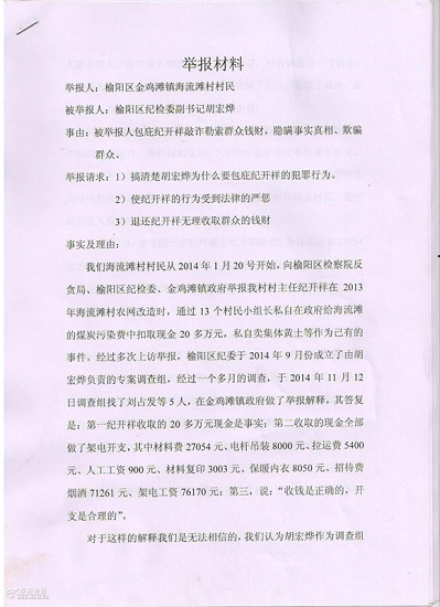 村民實名舉報榆林市榆陽區(qū)紀檢委副書記胡宏燁