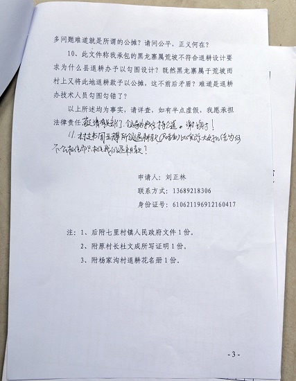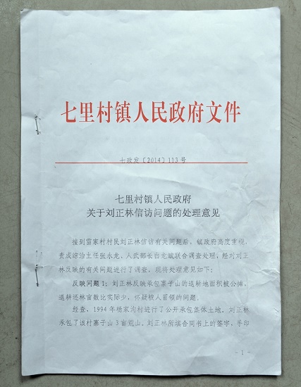 我是延長縣七里村鎮(zhèn)楊家溝村民,叫劉正林,電話13689218306身份證號610621196912160417。我在網(wǎng)上實(shí)名舉報(bào)我的退耕款被冒領(lǐng)一事,延長縣紀(jì)委責(zé)七里村鎮(zhèn)政府調(diào)查處理。七里村政府不以事實(shí)為依據(jù),偏袒村干部,給我做出讓人啼笑皆非的處理意見——說我的退耕款被公攤了?,F(xiàn)在我無能為力,只能求助于你們?yōu)槲抑鞒止馈?/p>