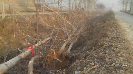 在2014年12月19日凌晨2點左右,糾集黑社會人員將村里的十幾顆大樹推倒。