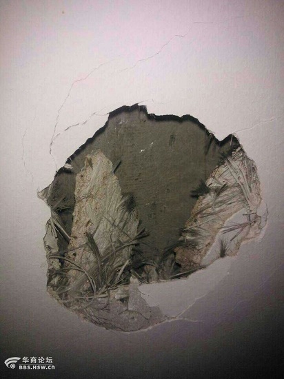2011年交房時,玉龍公司工作人員以不簽字就不給鑰匙、不交房為要脅,脅迫業(yè)主們在數(shù)份與交房相關(guān)的文件上簽字。而后業(yè)主們方才第一次被準(zhǔn)許進(jìn)入爭訴房內(nèi),當(dāng)時不少業(yè)主就已經(jīng)發(fā)現(xiàn)房屋內(nèi)墻被偷換為輕質(zhì)板,但玉龍公司工作人員卻解釋道:“小區(qū)這種現(xiàn)象很普遍,現(xiàn)在物業(yè)還不完善,等完善了給大家統(tǒng)一解決”,業(yè)主們無奈中只得入住,靜等后期統(tǒng)一解決。入住后業(yè)主們發(fā)現(xiàn)內(nèi)墻多處銜接處有裂縫,且裂縫越來越大,大到可容下一拳頭;房屋隔音效果極差,甚至相鄰兩戶間說話都清晰可辨,毫無隱私可言;內(nèi)墻輕嵌成為擺設(shè),人根本不敢依靠;最令人氣憤的是連入戶門框一拳都可打穿,防盜門形同虛設(shè),完全起不到安全保障作用。