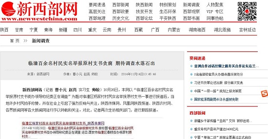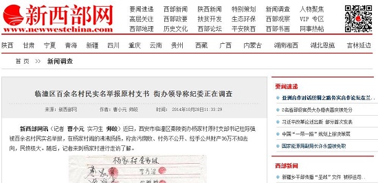 新西部網(wǎng)訊(記者趙亮)本網(wǎng)分別于10月28日以《臨潼區(qū)百余名村民實(shí)名舉報(bào)原村支書 街辦領(lǐng)導(dǎo)稱紀(jì)委正在調(diào)查》和11月14日以《臨潼百余名村民實(shí)名舉報(bào)原村支書貪腐 期待調(diào)查水落石出》為題對(duì)“臨潼區(qū)楊家村百余名村民實(shí)名舉報(bào)原村支書杜某”一事進(jìn)行了報(bào)道,并在社會(huì)上引起了強(qiáng)烈反響與關(guān)注。如今該事件已經(jīng)過去了一個(gè)多月,該區(qū)卻一直沒有公布處理結(jié)果。