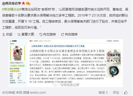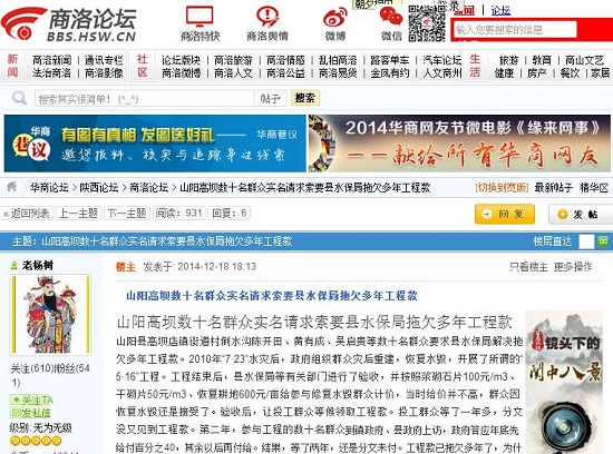 山陽縣高壩店鎮(zhèn)街道村倒水溝陳開田、黃有成、吳啟貴等數(shù)十名群眾要求縣水保局解決拖欠多年工程款。2010年“7·23”水災(zāi)后,政府組織群眾災(zāi)后重建,恢復(fù)水毀,開展了所謂的“5·16”工程。工程結(jié)束后,縣水保局等有關(guān)部門進(jìn)行了驗(yàn)收,并按照漿砌石片100元/m3、干砌片50元/m3、恢復(fù)耕地600元/畝給參與修復(fù)水毀群眾計(jì)價(jià),當(dāng)時(shí)給價(jià)并不高,群眾因恢復(fù)水毀還是接受了。驗(yàn)收后,讓投工群眾等候領(lǐng)取工程款。投工群眾等了一年多,分文沒又見到工程款。第二年,參與工程的數(shù)十名群眾到鎮(zhèn)政府、縣政府上訪,政府答應(yīng)年底先給付百分之40,其余以后再付給。結(jié)果,等了兩年,還是分文未付。工程款已拖欠多年了,為什么給投工群眾遲遲不能兌付呢?是給政府干活拖欠了工錢拿不到手,又不是私人老板拖欠,這樣的政府還能取信于民嗎?又是一年年終,強(qiáng)烈要求很快對(duì)付拖欠群眾的工程款!