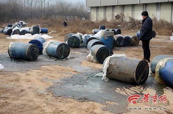 昨晚8時,藍田縣環(huán)保局一名負責人透露,他們已找到廢料的生產(chǎn)廠家?!笆撬{田縣一家香料公司的,該公司工作人員說廢料是副產(chǎn)品,公司已轉賣給第三方企業(yè),傾倒廢料是第三方公司的行為。”負責人說,“是否是第三方公司行為,還需再調(diào)查”。