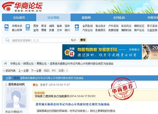 澄城縣串業(yè)村四組村民舉報,村書記勾結(jié)他人,將村上原審批的村委會建設(shè)用地(未經(jīng)群眾代表大會)更換了蒲白礦務(wù)局的地,事后又將這塊地以私人名義買下轉(zhuǎn)買他人,建加油站。