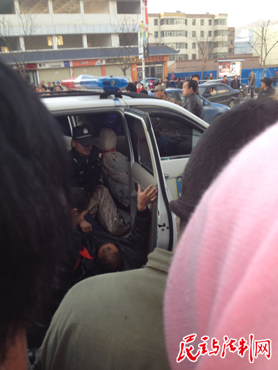 中午11點20分,當記者正在周邊了解情況時,一輛車牌為寧D0239警車上下來十余名警察將廢墟邊的商戶張文斌帶走。四名商戶里的女主人王小艷、張芳芝、張金定、柳調(diào)過無奈下跪求引來圍觀。
