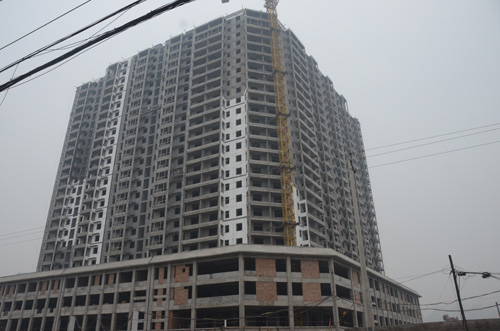村民所指村長(zhǎng)占用集體耕地私建的小產(chǎn)權(quán)樓主體已經(jīng)完工,初步測(cè)算已有26層