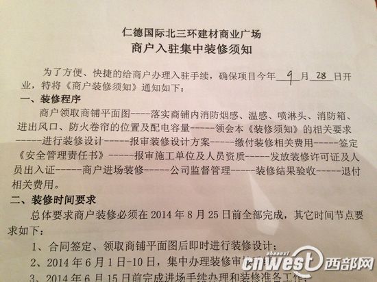 網(wǎng)友房先生告訴記者,他今年7月10日在仁德國際北三環(huán)建材家居廣場預(yù)訂了一套商鋪,當(dāng)時(shí)商城承諾9月28日開業(yè)。房先生計(jì)劃,自家商鋪裝修需要一個(gè)月,剛好趕上商城開業(yè),于是就交了25000元定金并簽訂了合同。