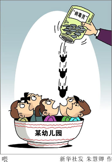 【新聞鏈接】:在陜西、吉林相繼出現(xiàn)幼兒園違規(guī)給幼兒服用病毒靈之后,湖北又出現(xiàn)疑似給幼兒喂服病毒靈情況,警方正在調(diào)查。