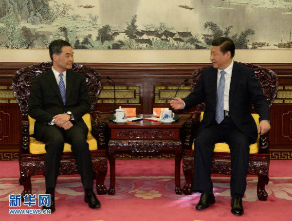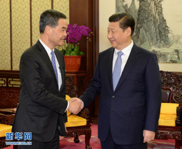 國(guó)家主席習(xí)近平18日下午在中南海會(huì)見(jiàn)了來(lái)北京述職的香港特別行政區(qū)行政長(zhǎng)官梁振英,聽(tīng)取了他對(duì)香港當(dāng)前形勢(shì)和特區(qū)政府一年來(lái)工作情況的匯報(bào)。