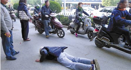 可是,停下來(lái)的人你看看我,我看看你,誰(shuí)也不敢上前扶起老人。