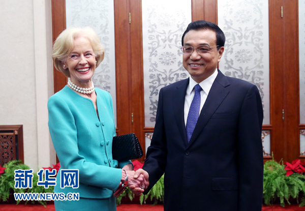 國務院總理李克強17日下午在人民大會堂會見澳大利亞總督布賴斯。
